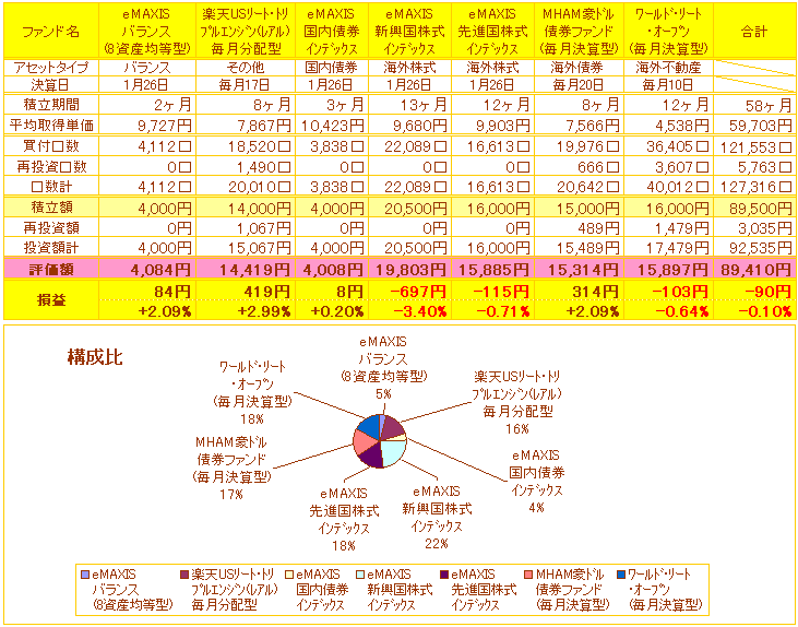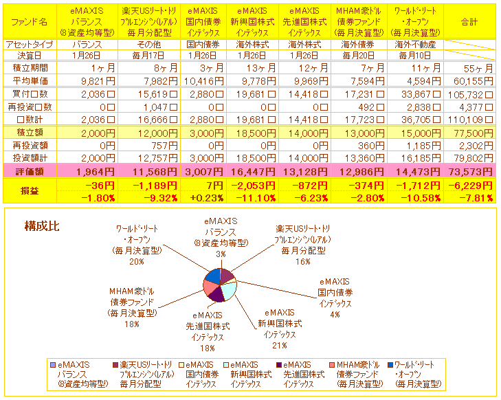 暫く上がりそうに無いので、1,000円の積立を2倍の2,000円にしています。