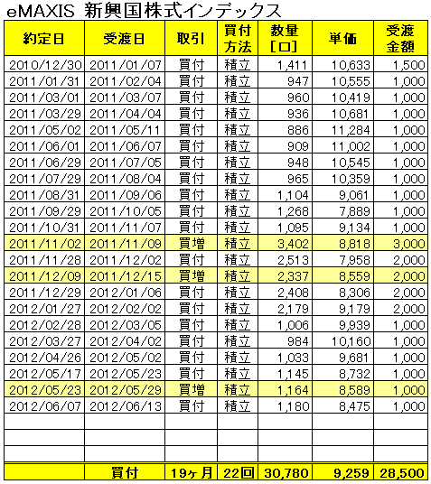 「eMAXIS 新興国株式インデックス」 2012/6/8現在-7.27%
