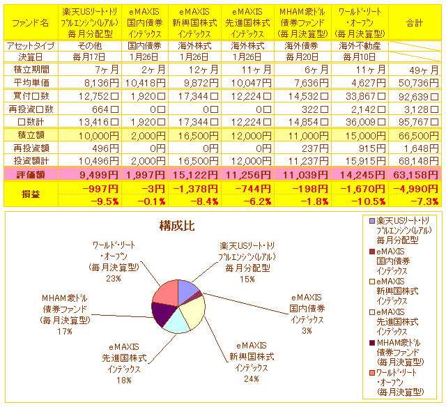 評価損益(率)が-13.5%から-7.3%にまで回復しました\(^_^)/