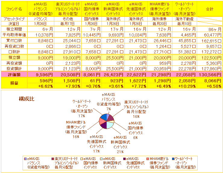 毎月@1000円ずつの投資信託も17ヶ月が経過しました