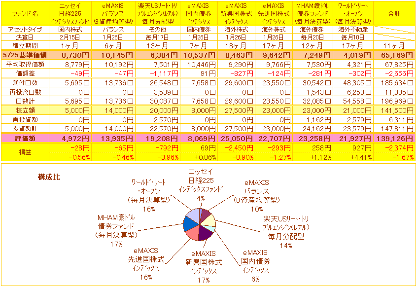 平均取得価額 5/18 10,207円 → 5/25 10,192円