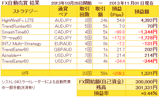 平成25年10月28日~シストレ24でFXの自動売買を始めてから